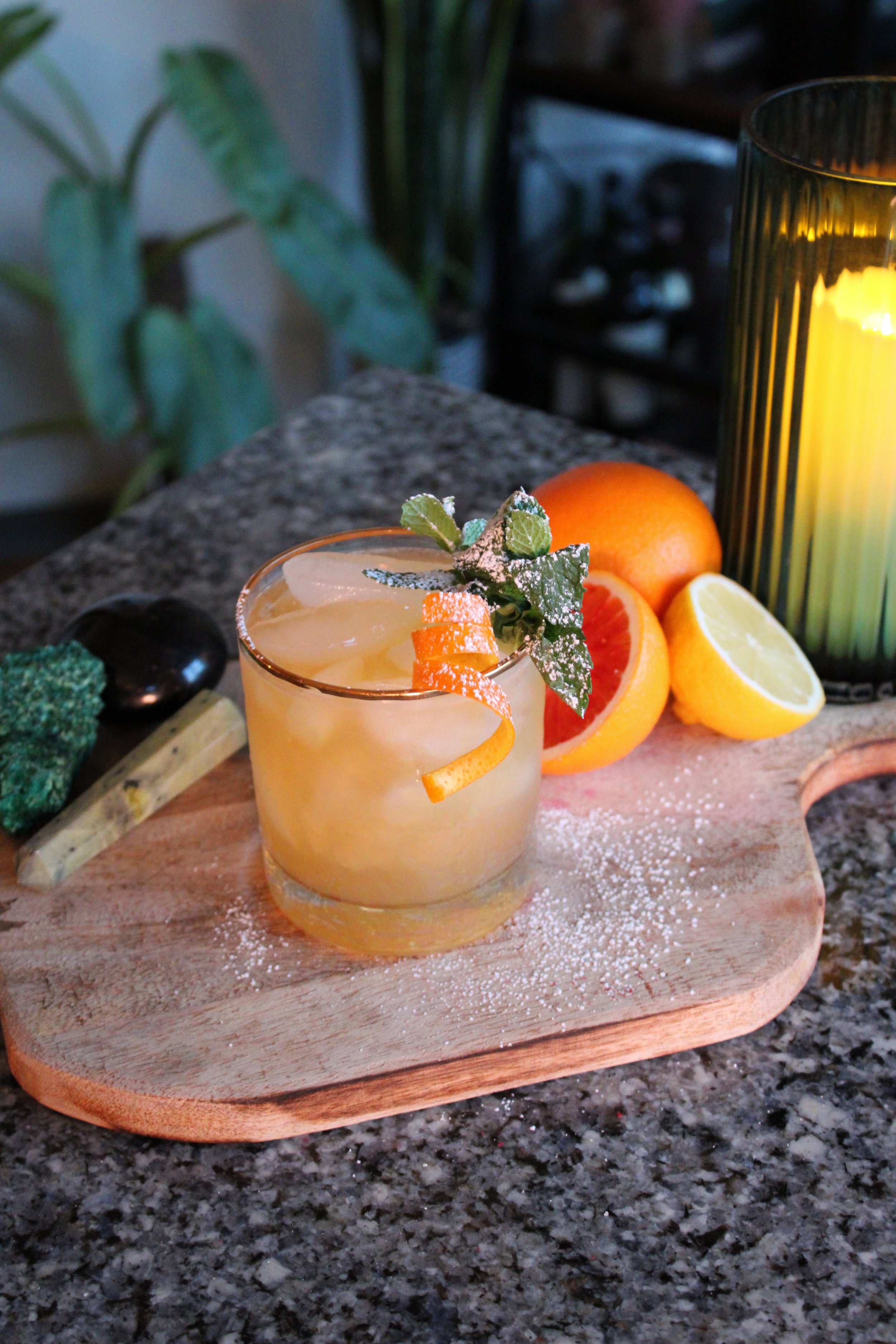 A bright winter cocktail that combines fresh orange and lemon juices with aromatic mint and bourbon. This refreshing smash celebrates peak citrus season while maintaining warming winter notes, perfect for those seeking a bright yet cozy winter serve that captures Capricorn's appreciation for both structure and seasonal abundance.