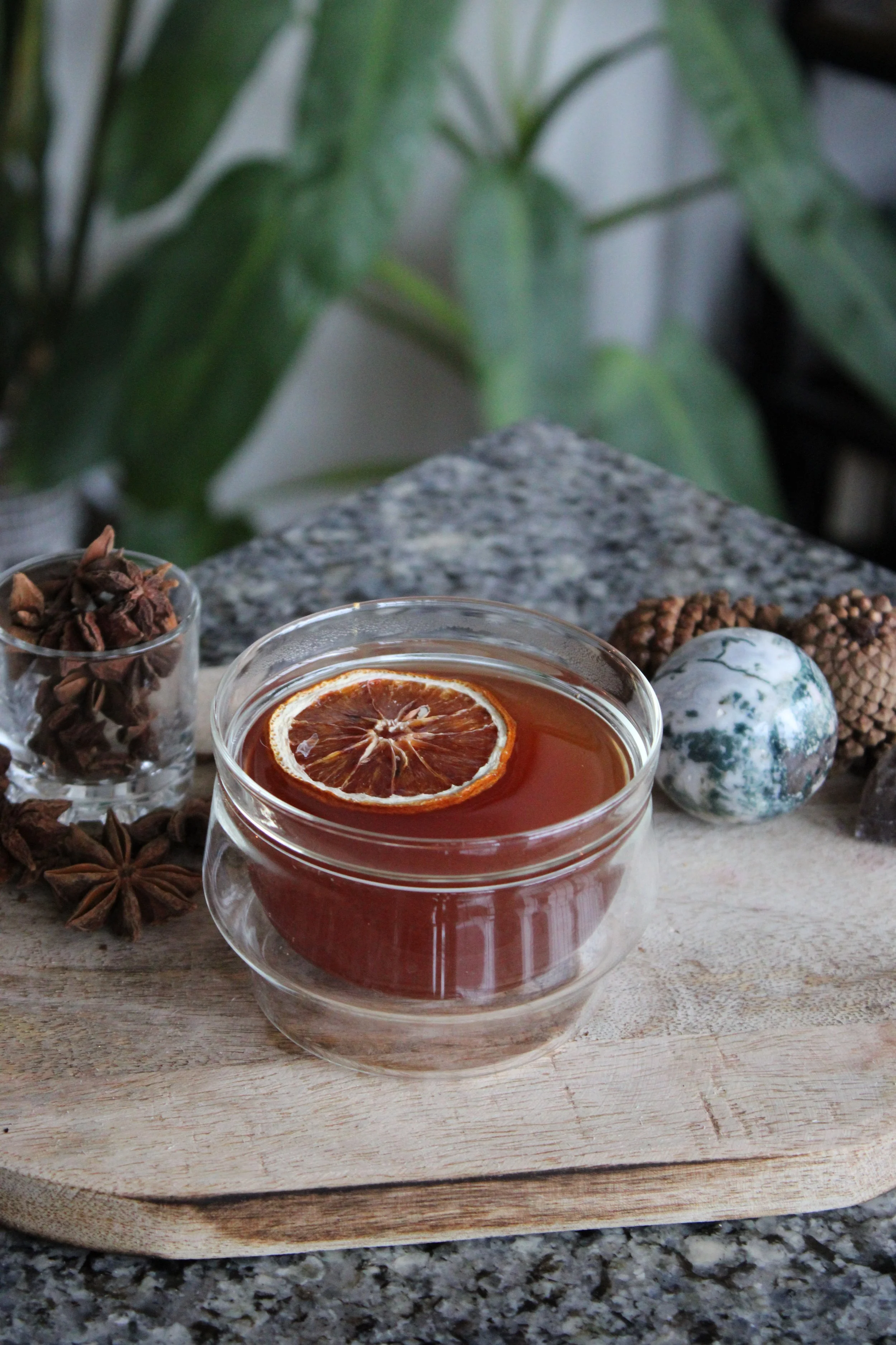 A warming, transformative cocktail that combines the richness of aged tequila with the vibrant notes of blood orange and ginger. The addition of hot black tea creates a comforting warmth, while star anise adds mystical depth. This cocktail evolves as it changes temperature, revealing new layers of complexity with each sip.