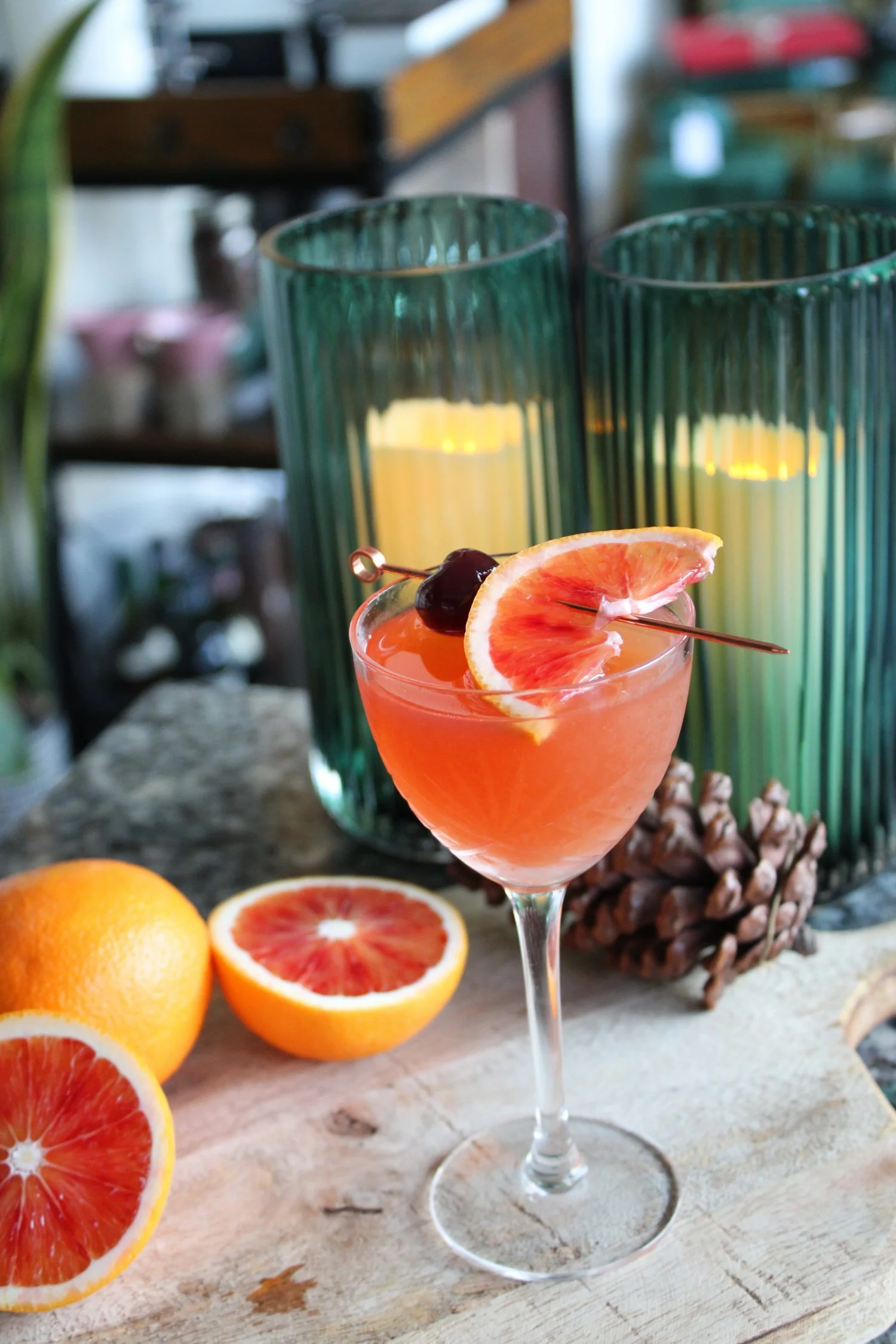 A seasonal twist on the classic Manhattan featuring winter citrus. This cocktail balances the warmth of rye whiskey with the bright, complex sweetness of fresh blood oranges.