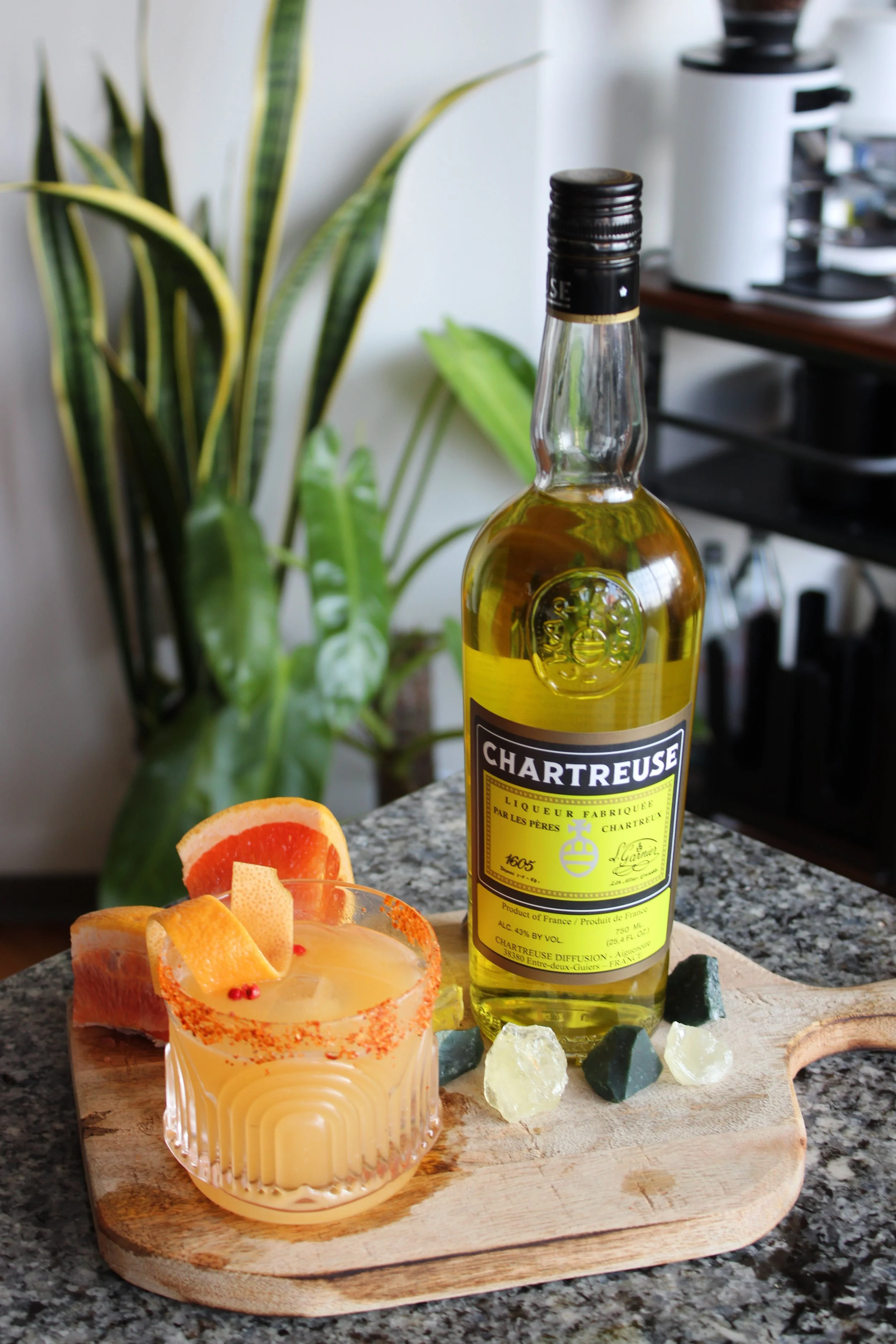 A bold mezcal cocktail that challenges expectations through the unexpected warmth of pink peppercorns against cooling citrus. This drink embodies Gemini's love of intellectual complexity and conversation-starting combinations. Mezcal provides smoky depth, while fresh grapefruit and lime offer bright acidity. The pink peppercorn syrup adds aromatic spice without overwhelming heat, and Yellow Chartreuse contributes herbal complexity. The Tajín rim bridges the gap between sweet and savory elements.